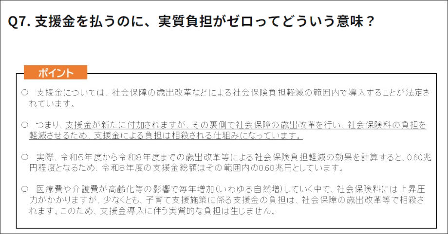 Q7. 支援金を払うのに、実質負担がゼロってどういう意味?