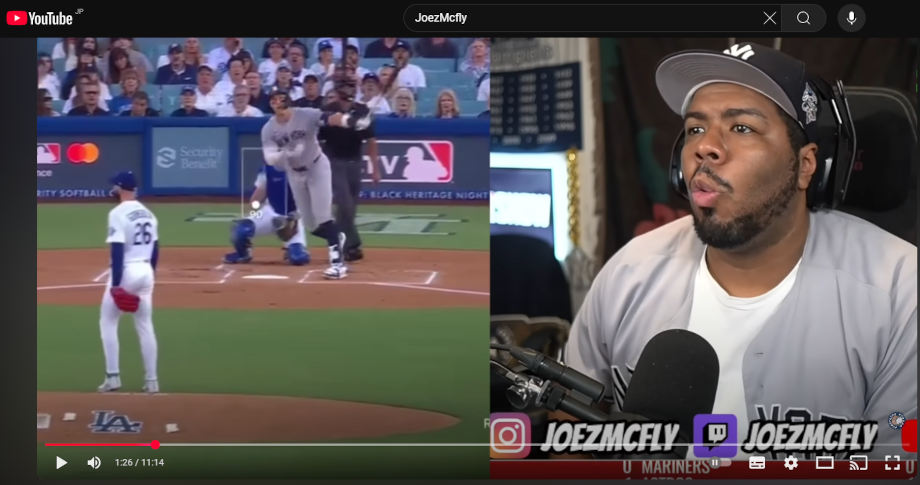 一方、実はゲーマーとうたっているジョーズ氏も自身が持つ「joezmcfly」チャンネルでは、ヤンキース戦の実況や現地観戦の動画を配信しています。