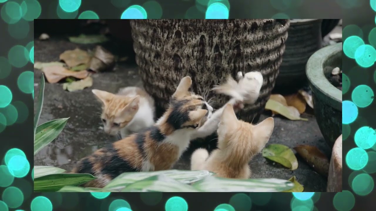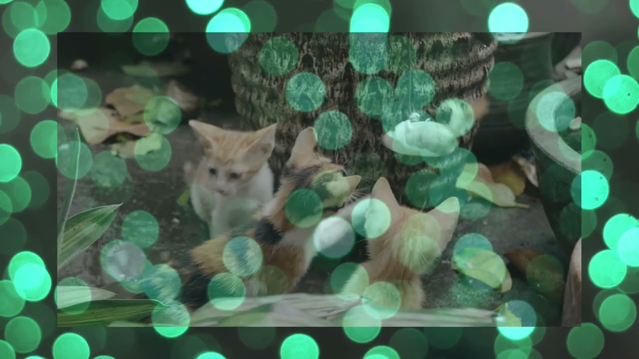 上の動画では、子猫が戯れる可愛い系の動画の背景に使用してみました。